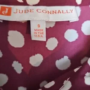 Jude Connally Burgundy Cream Long Sleeve Tiered Mini Dress Sz Small