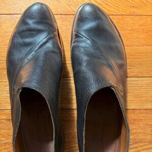 Beautifully made black leather shoes, non-slip sole, barely worn. Made in USA.