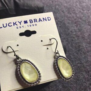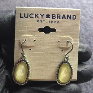 Lucky Brand Drop Earrings – Yellow Gemstone with Beaded Silver-Tone Frame