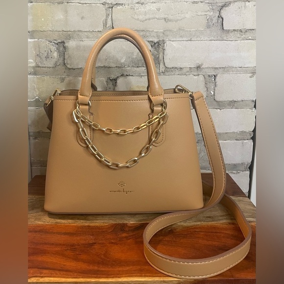 Nanette Lepore Valle Satchel with Gold Chains, Top Handles and Shoulder Strap