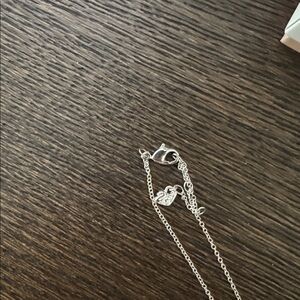 This elegant silver necklace features stunning blue and clear gemstones. Perfect for adding a touch of sophistication to any outfit.