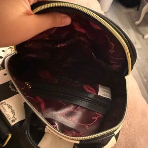 a black and white striped backpack with spikes, designer betsey Johnson for both bags. No rips or tears.
