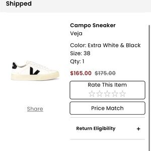 Stylish Veja Campo sneakers. White leather with black accents. Comfortable and versatile.