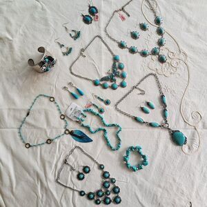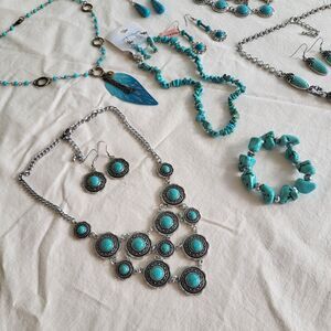 4 Necklaces are blue howlite, the other are unknown turquoise tone fashion jewelry.