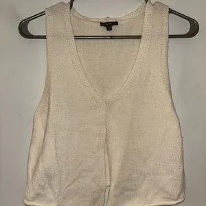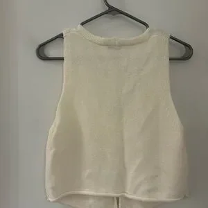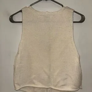 Chic cream tank top with a soft knit texture. Ideal for layering or wearing alone. Versatile and stylish.