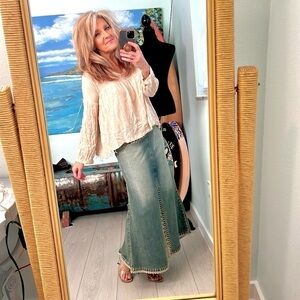 🔥Crest,Incredible Jean Skirt,Soft Knit Front Panel, Front Zip, Belted,Size 6