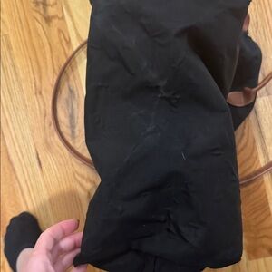Stylish Longchamp tote. Black body with brown leather accents. Perfect for everyday use.