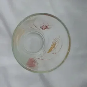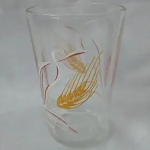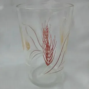 Vintage/retro harvest wheat themed breakfast/juice cup. Red and wheat yellow colour wheat stalks with white leaves.