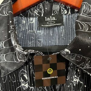 NWT Dressed in LALA Plisse Dress in Astronaut Black and White Size Large