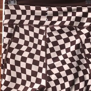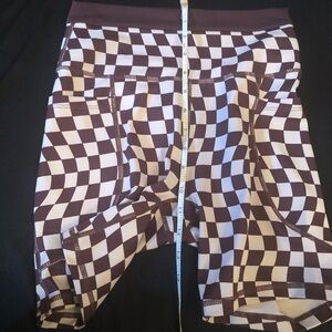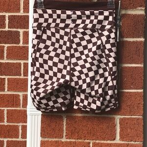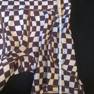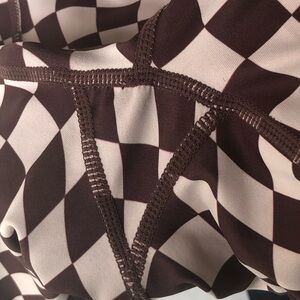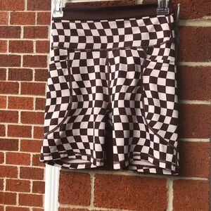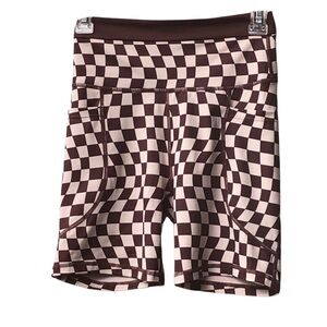 Stylish and comfortable brown and tan checkered pattern bike shorts for women. Perfect for cycling, casual wear or even yoga.
