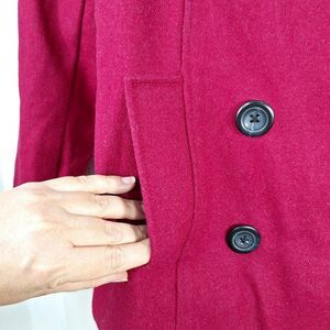 Merona Maroon Red Wool Double-Breasted Lined Winter Blazer Pea Coat Pockets Sz M