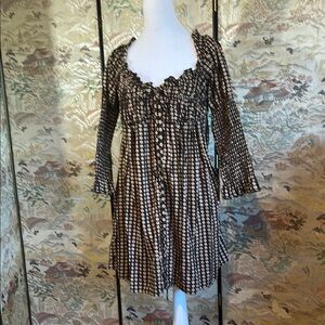 FREE PEOPLE STAR DIP TUERED SMOCKED BUTTON FRONT COTTEN MINI DRESS SP