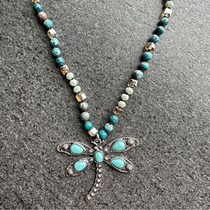 TAGS: Fashion Bohemian Jewelry Mix Stone Knotted Multicolor Beaded Long Necklace Silver Turquoise Dragonfly Pendant Business Casual Special occasions Everyday wear