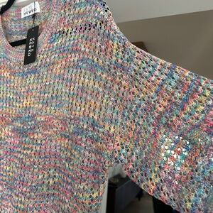 NWT KATE HEWKO Multicolour Crochet Sheer Tee with Side Slits - One Size Fits Most.