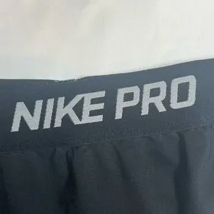 Nike swoosh on left leg (pictured) has obvious signs of wear, Nike Pro lettering on elastic waistband looks good as new.