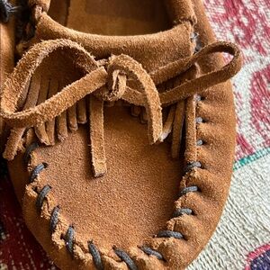 Minnetonka Tan Suede Moccasins with Fringe size 6 like new