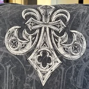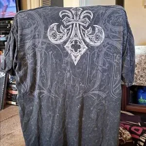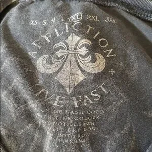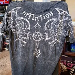 Affliction tee with skull motif. Black and white design. Edgy and bold.