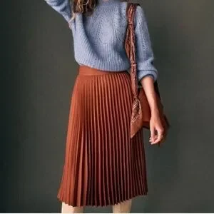 Sezane Elegant Brown Pleated Dino Skirt size 36 us size 4
