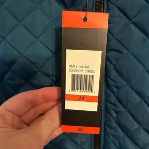 NWT Andrew Marc Quilted Vest with Side ribbing accent. Size Medium. Cypress Green color with black accents. Item #1047386. Material and care instructions included in the pictures. Approximate dimensions when laid flat: Length- 25”, Chest- 19”.