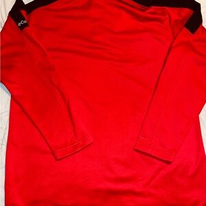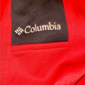 Vibrant red Columbia fleece with quarter-zip design. Soft and warm material.
