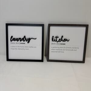 Set of 2, Kitchen and Laundry 10 inch Square Wall Signs Decor - Brand New