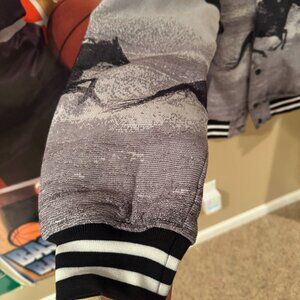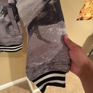 🔥 Stand out with this limited edition Compton Cowboys x Forever 21 varsity-style jacket, featuring an all-over grayscale cowboy and horse print with bold Western vibes. This unique piece pays tribute to the Compton Cowboys, a collective that redefines cowboy culture.