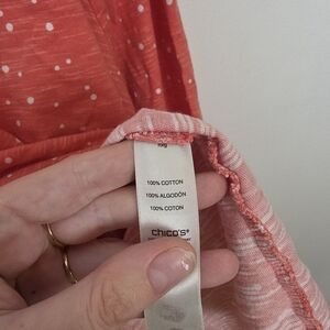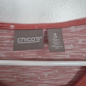 Chico's Coral Pink White Polka Dot 3/4 Sleeve Cotton Casual Summer Shirt Size 16