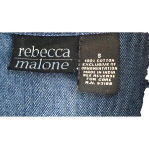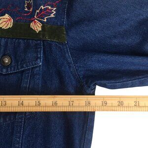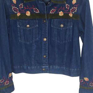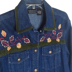 Rebecca Malone Denim Jacket Womens Small Blue Embroidered Leaves Velvet Trim