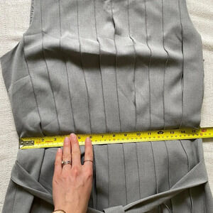 Condition: 10/10 excellent no visible flaws or damage just needs a quick steam! Beautiful pleating down the front and back, comes with belt, lined.