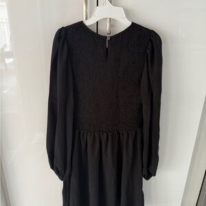 Chic black dress with long sleeves. Features a stylish textured design. Preloved. Very good condition. No flaws. Welcome Offers