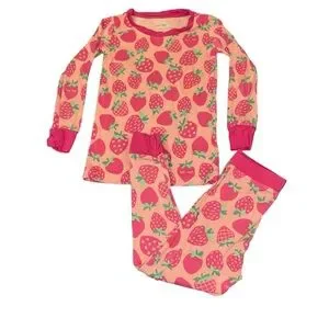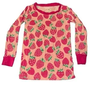 Little Sleepies Pink and Green Sweet Strawberry Long Sleeve Bamboo Pajamas