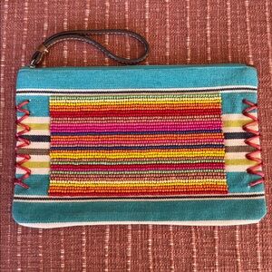 LOFT Beaded Canvas Multi Colored Wristlet