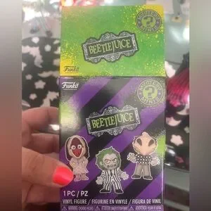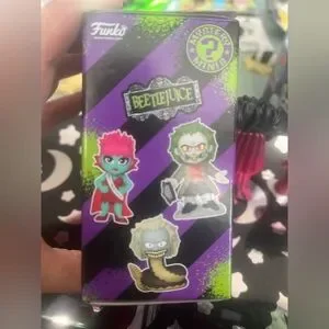 Collectible Funko figures from Beetlejuice. Includes three unique characters (Beetlejuice, Lydia, and sand worm) each from mystery boxes - perfect for Halloween and all year round