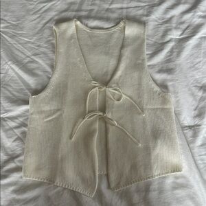 Elegant knit sleeveless top. Features a tie-front design. Soft and comfortable fabric.