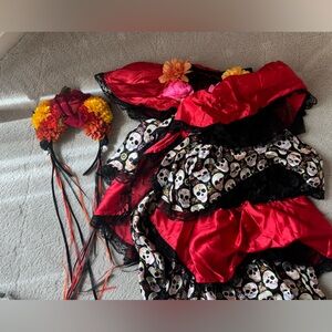 Halloween costume day of the dead Dia De Los Muertos 2 piece - skirt & headband