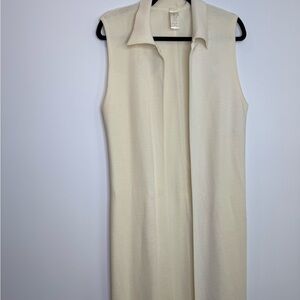 Vintage Rodier off white wool blend minimalist long slits sleeveless cardigan