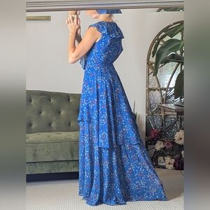 Lulu's Floral Ruffle Hi-Lo Dress Size XS Blue Vacation