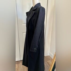 The color is a dark gray, wool blend. I’m a size xs-small and it hits mid calf and there’s definitely a little room in it so if you’re on the smaller end of a medium it would fit. The mannequin is a size 6.