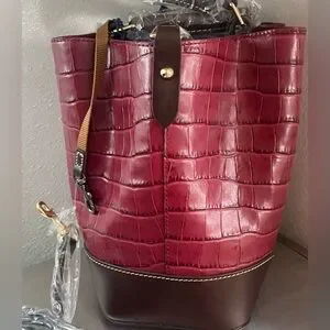 DOONEY AND BURKE..Burgundy Croc-Embossed Shoulder/Crossbody Bag