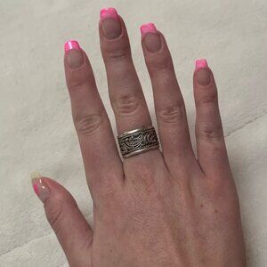 reallyPretty wide bandring with textured design, great toLayer with otherrings