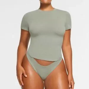 SKIMS Cotton Jersey T Shirt Womens XS Mineral Green Crewneck Tee Casual NWT NEW