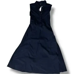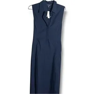 Banana Republic New W/ Tags Dark Blue Button Down Collared Tie Waist Midi Dress