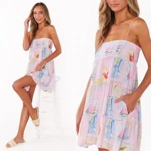 features: go ahead and set that OOO message because your getaway uniform has arrived. This mini is a lightweight linen dream with a square neck, pockets, and a drapey silhouette that feels like a fresh breeze. Slip it on, grab a spritz, and let the vacay begin