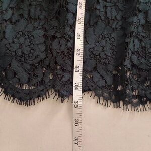 • Features: Lace covered Sleath Dress, lined, cutout back, button and back zip, scalloped hem