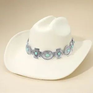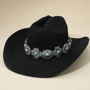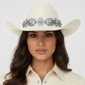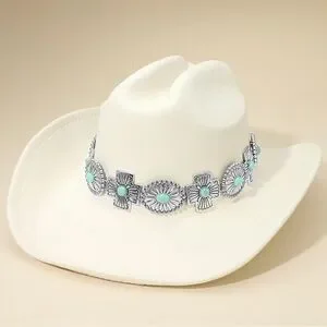 Classic western cowboy hat designed with a detailed concho band that adds bold character and unique flair. Perfect for festivals, rodeos, or casual style, this hat blends timeless tradition with standout fashion appeal, making it a versatile accessory for any western-inspired look.