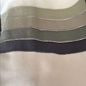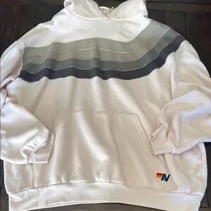 Cozy pinkish cream hoodie with stylish gray stripes. Features a front pocket and soft fabric. Worn once washed with something that bleed so sweatshirt has pink tone. I have no idea how to get out but maybe you do or you like the color than this AV stylish hoodie is for you!