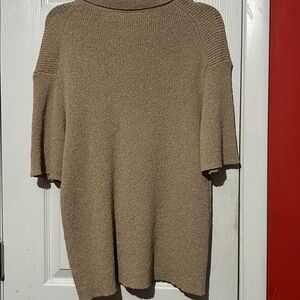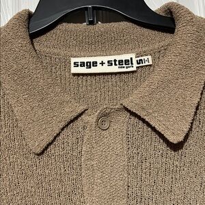 Sage + Steel knit polo shirt in a warm brown shade. Features a classic collar and button detail.