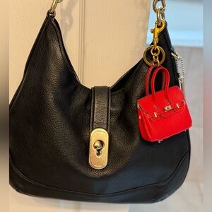 Elegant red leather key holder with gold accents. Perfect for organizing your keys in style.