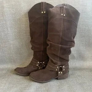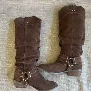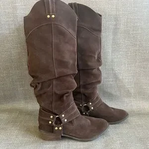 Restricted crunched Brown Suede Cowboy Knee-High Boots size