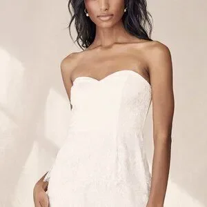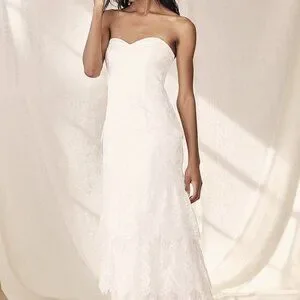 NWT Lulus End With A Kiss White Floral Lace Strapless Tiered Maxi Dress